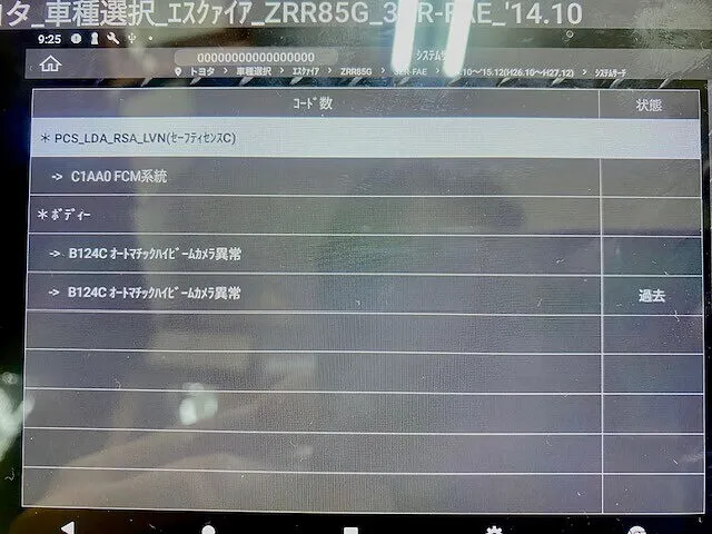 平成28年 エスクァイヤ 走行中にプリクラッシュセーフティ、オートハイビームなどのエラーメッセージが表示されて入庫されました。